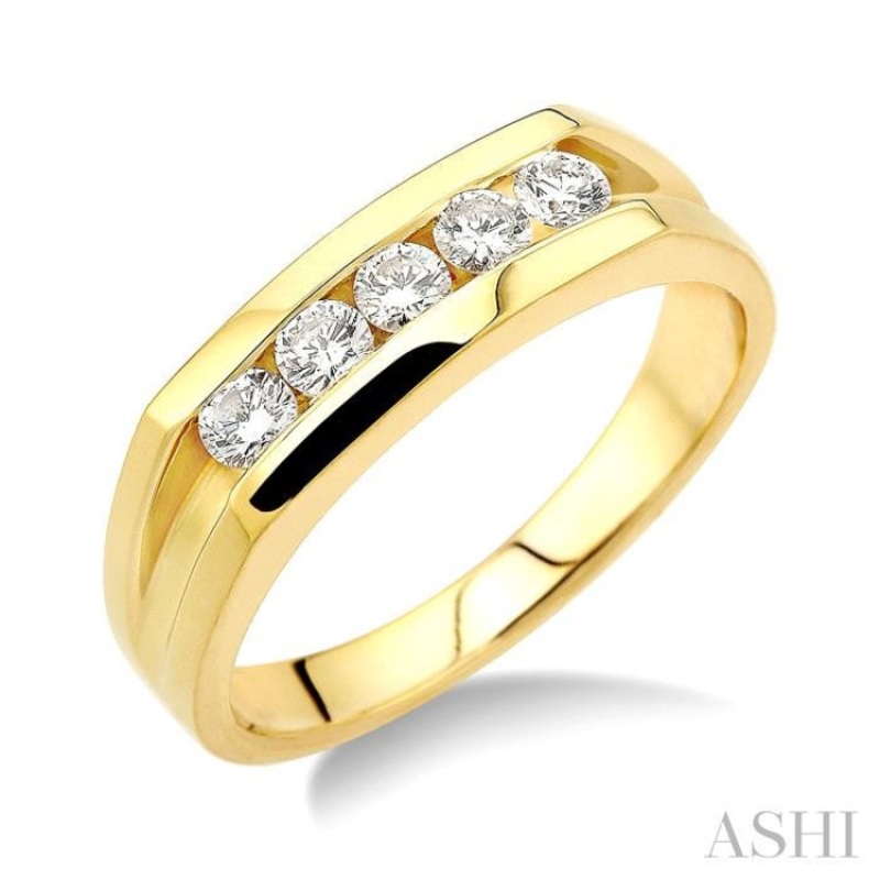 1/2 ctw Channel Set Round Cut Diamonds Men’s Ring in 14K Yellow Gold
