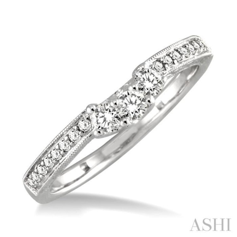 1/3 ctw Arched Center Engraved Foliage Round Cut Diamond Wedding Band in 14K White Gold