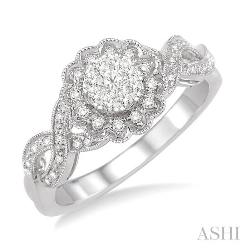 1/3 Ctw Lovebright Round Cut Diamond Ring in 14K White Gold