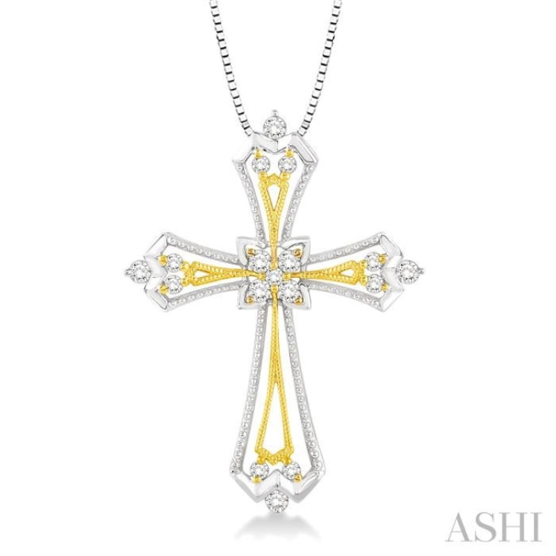 1/3 Ctw Round Cut Diamond Cross Pendant in 14K White and Yellow Gold with Chain