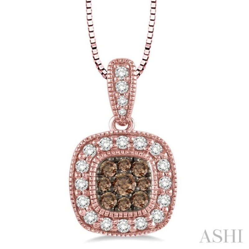 1/3 Ctw Round Cut White and Champagne Brown Diamond Fashion Pendant in 14K Rose Gold with Chain