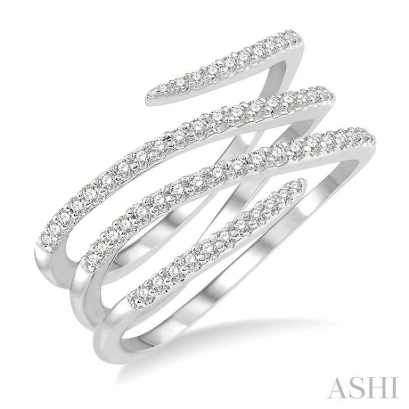1/3 Ctw Triple Spiral Open End Round Cut Diamond Fashion Ring in 14K White Gold