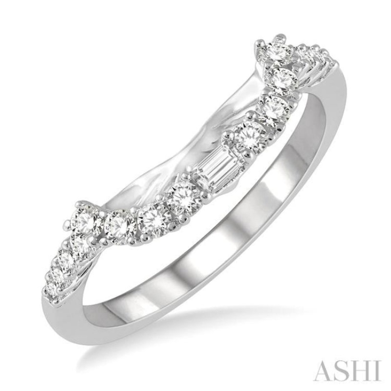 1/3 ctw Wide Curve Baguette and Round Cut Diamond Wedding Band in 14K White Gold