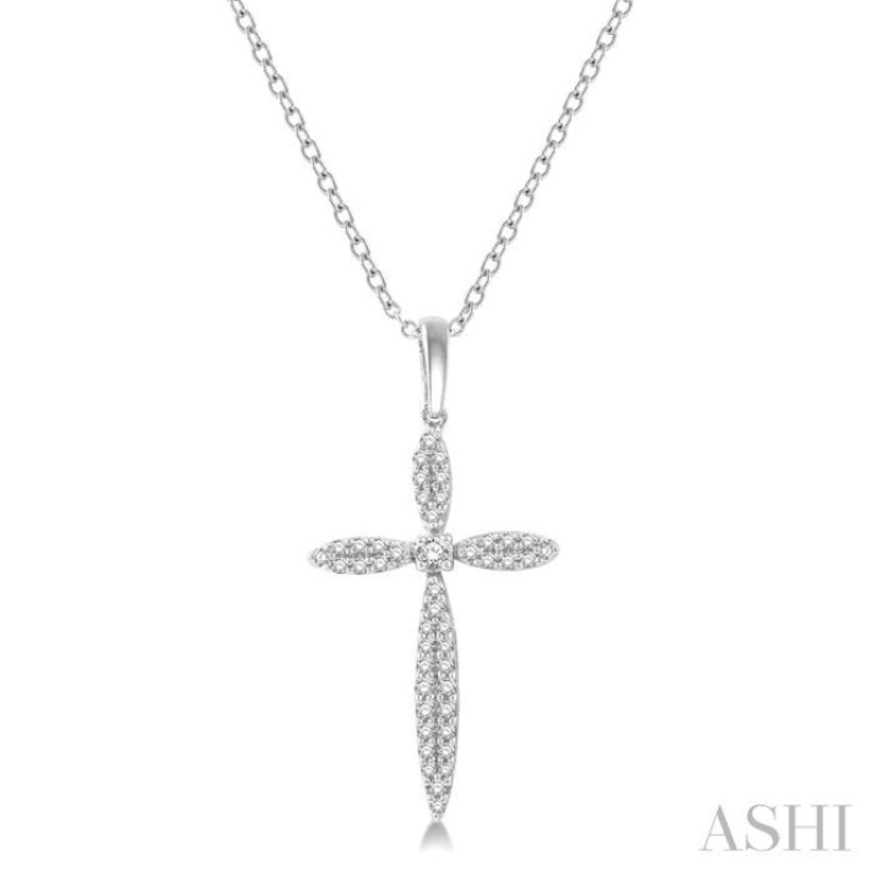 1/4 Ctw Marquise Shape Round Cut Diamond Cross Pendant With Chain in 10K White Gold