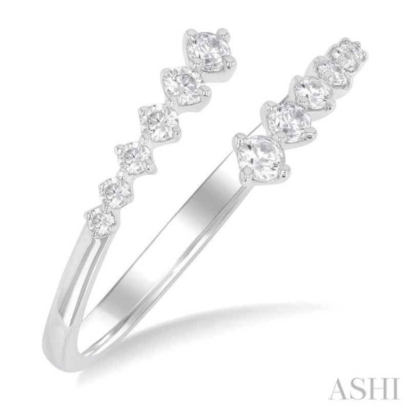 1/4 ctw Open Bypass Center Graduated Round Cut Diamond Fashion Ring in 14K White Gold