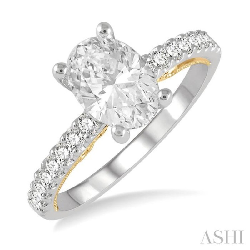 1/4 ctw Oval Shape Round Cut Diamond Semi-Mount Engagement Ring in 14K White and Yellow Gold
