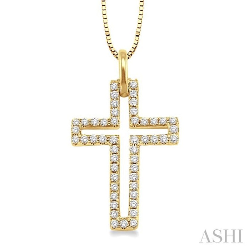 1/4 Ctw Round Cut Diamond Cross Pendant in 10K Yellow Gold with Chain