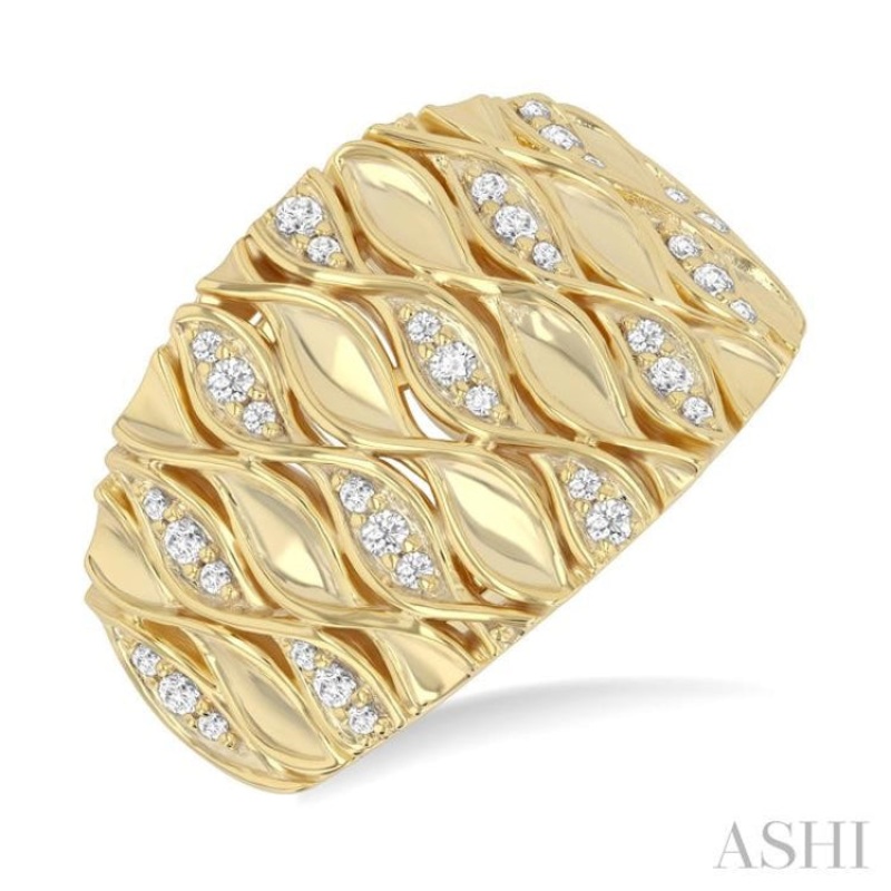 1/4 ctw Twisted Rows Round Cut Diamond Wide Fashion Band in 14K Yellow Gold