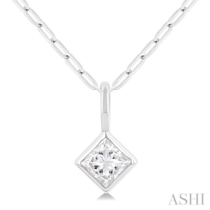 1/5 ctw Princess Cut Bezel Set Diamond Fashion Pendant with Paperclip Chain in 14K White Gold