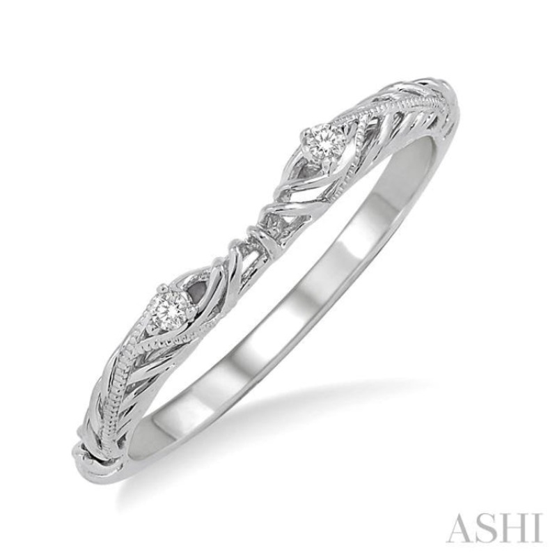 Convey the depth of your love with this classic diamond wedding band. Resplendent 2 round cut diamonds radiates shivers of brilliance on gleaming 14 karat white gold, beautifully prong set. Total diamond weight is 1/50 ctw.