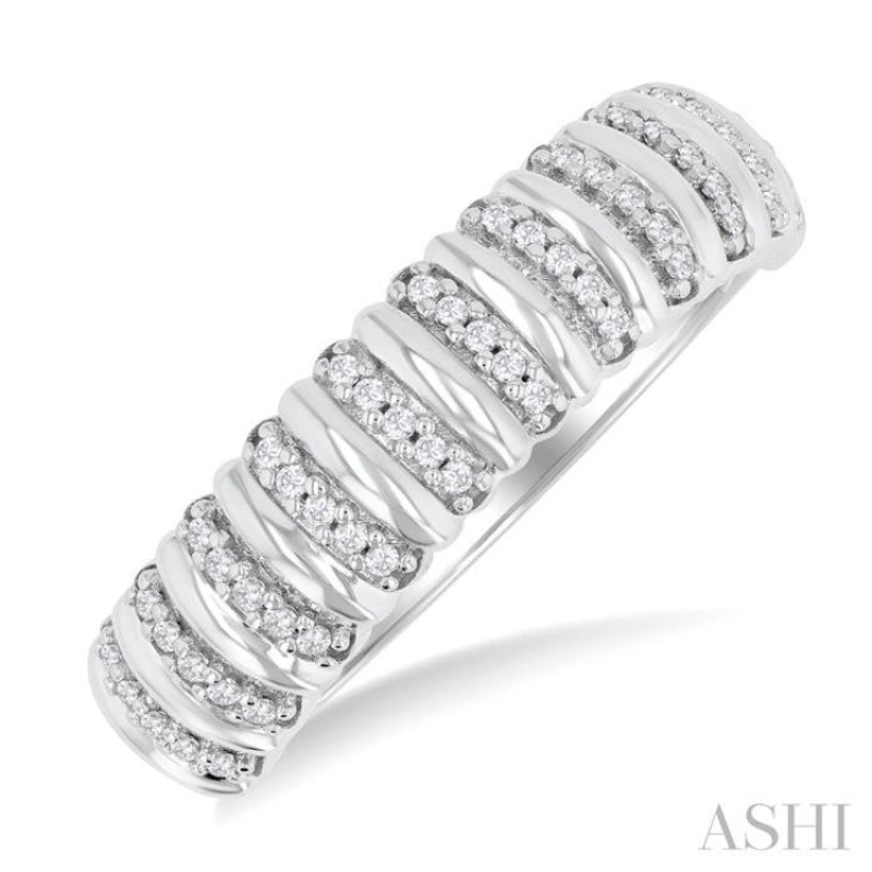1/6 ctw Ribbed Round Cut Diamond Fashion Ring in 14K White Gold