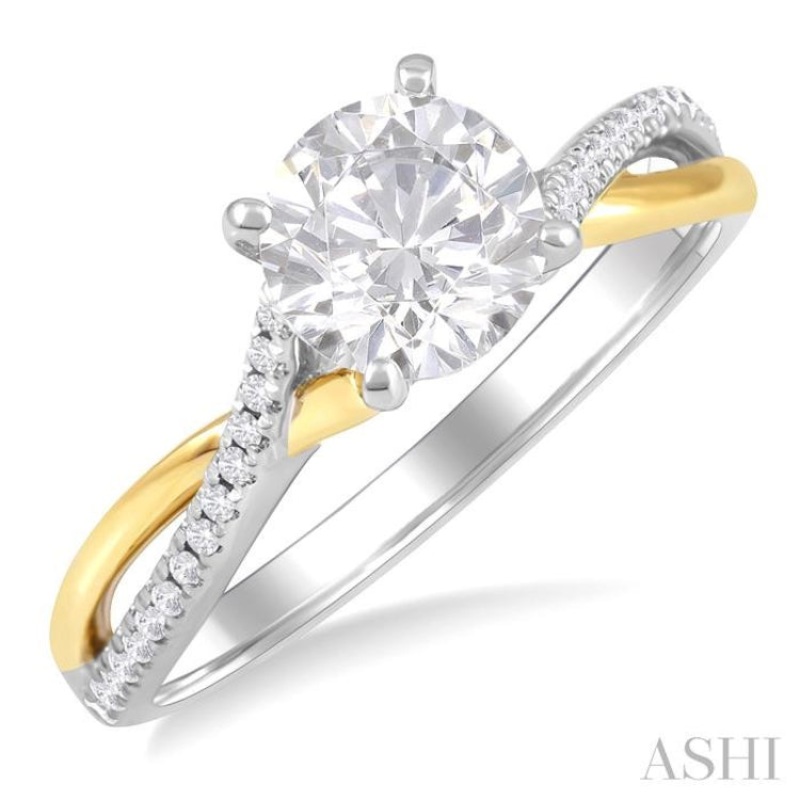 1/6 ctw Split Crossover Round Cut Diamond Semi-Mount Engagement Ring in 14K White and Yellow Gold