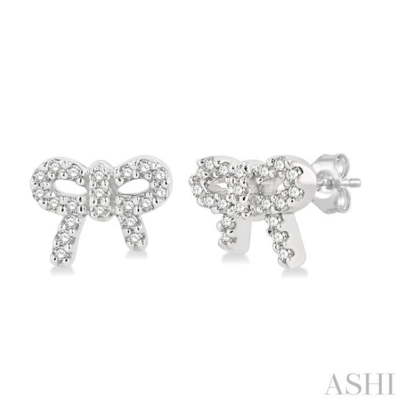 1/8 Ctw Bow Tie Round Cut Diamond Petite Fashion Earring in 10K White Gold