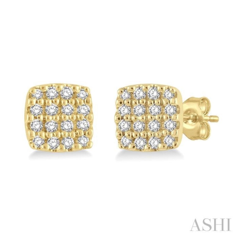 1/8 Ctw Cushion Shape Round Cut Diamond Petite Fashion Earring in 10K Yellow Gold