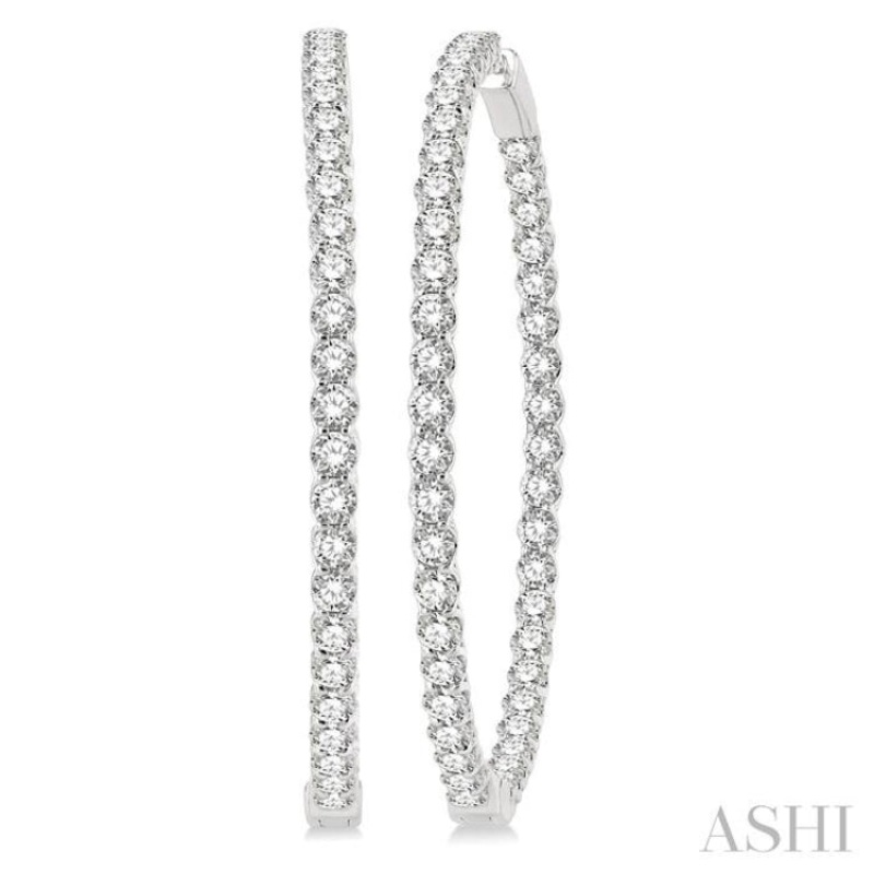 10 ctw Round Cut Diamond In & Out 2-Inch Hoop Earring in 14K White Gold