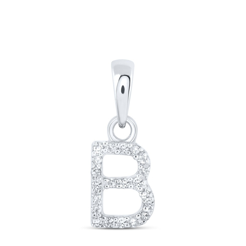 10kt White Gold Womens Round Diamond B Initial Letter Pendant 1/20 Cttw