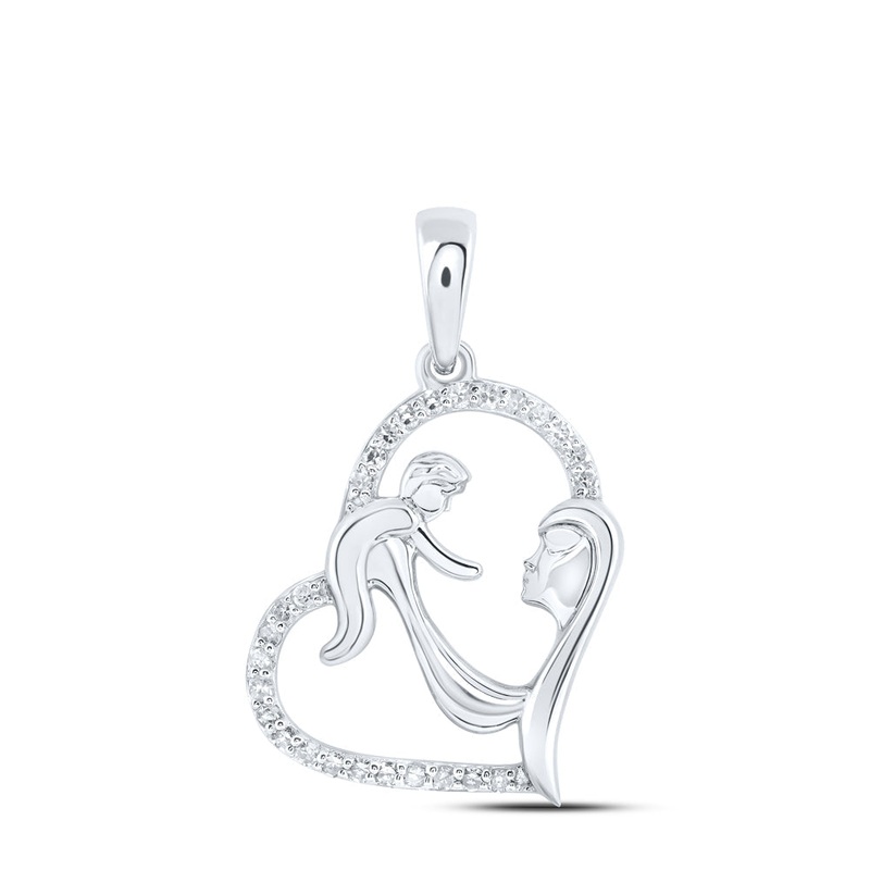 10kt White Gold Womens Round Diamond Mom Child Heart Pendant 1/8 Cttw