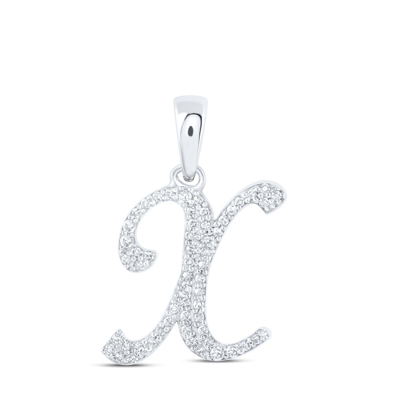 10kt White Gold Womens Round Diamond X Initial Letter Pendant 1/8 Cttw