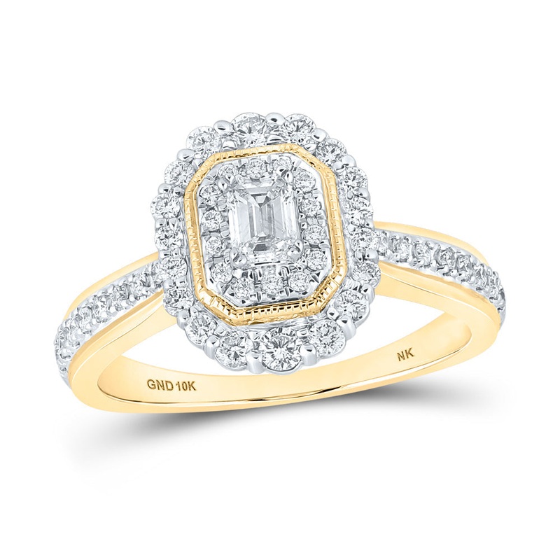 10kt Yellow Gold Emerald Diamond Halo Bridal Wedding Engagement Ring 5/8 Cttw