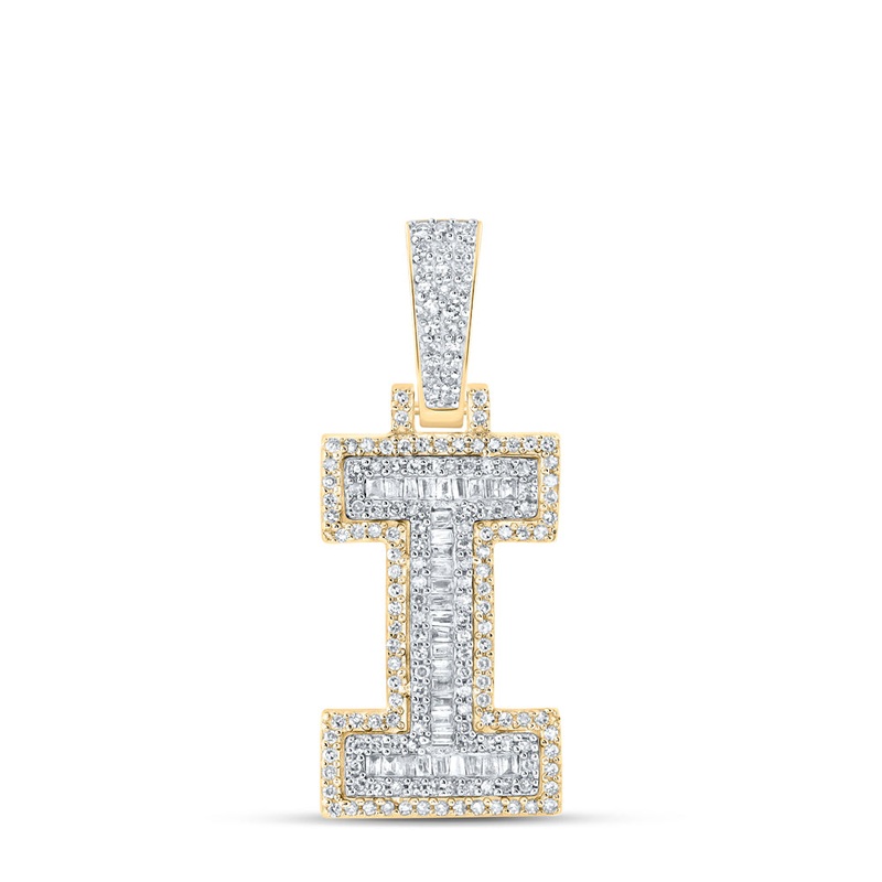 10kt Yellow Gold Mens Baguette Diamond I Initial Letter Charm Pendant 1/2 Cttw