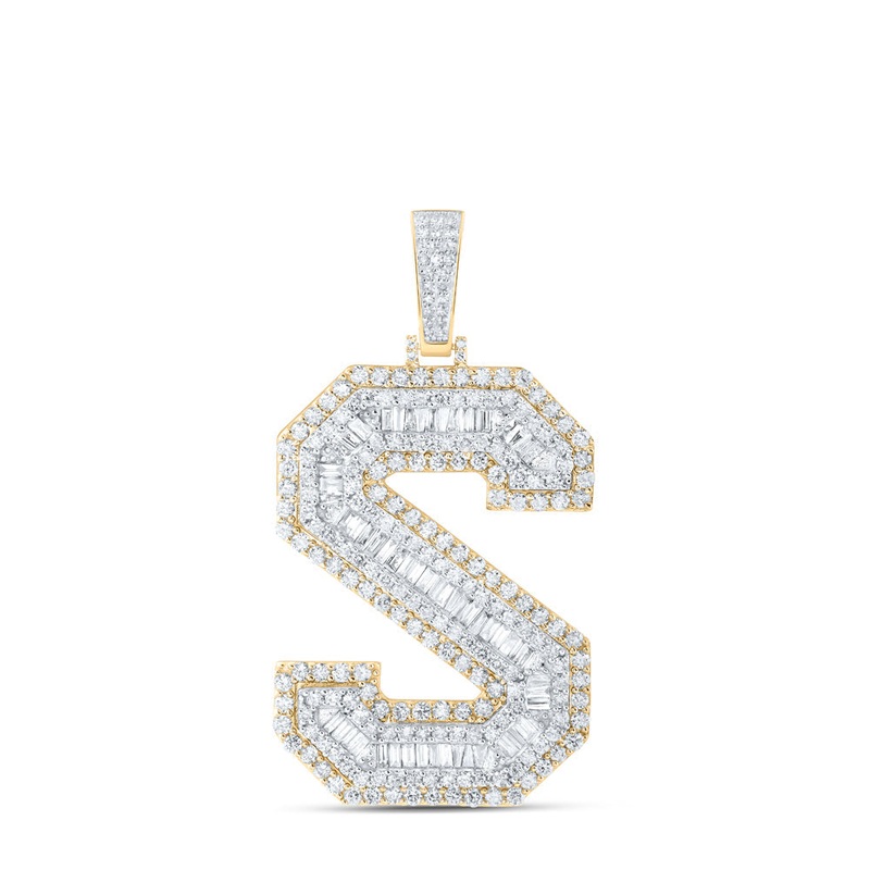 10kt Yellow Gold Mens Baguette Diamond S Initial Letter Charm Pendant 5-5/8 Cttw