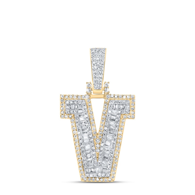 10kt Yellow Gold Mens Baguette Diamond V Initial Letter Charm Pendant 5/8 Cttw