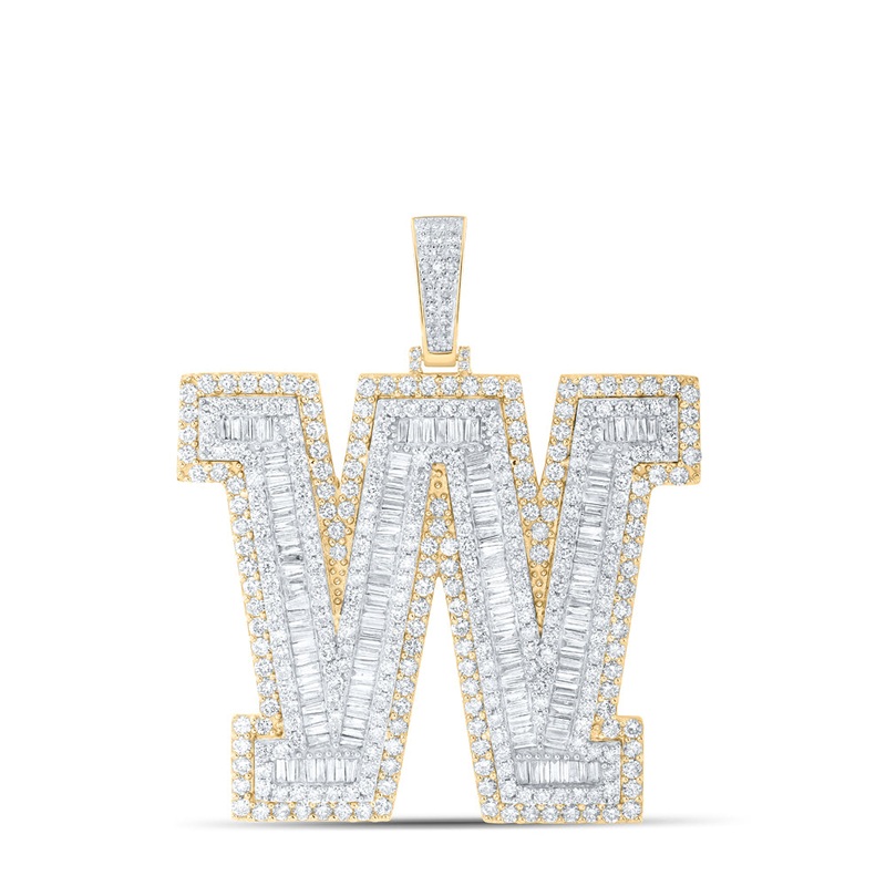 10kt Yellow Gold Mens Baguette Diamond W Initial Letter Charm Pendant 9-1/3 Cttw