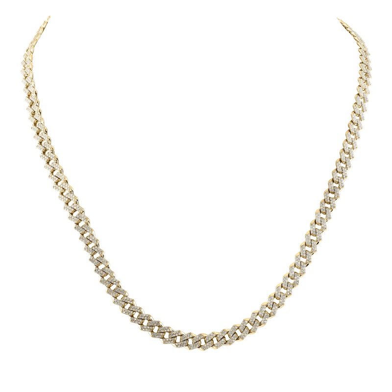 10kt Yellow Gold Mens Round Diamond 18-inch Straight Cuban Link Necklace 4-3/4 Cttw