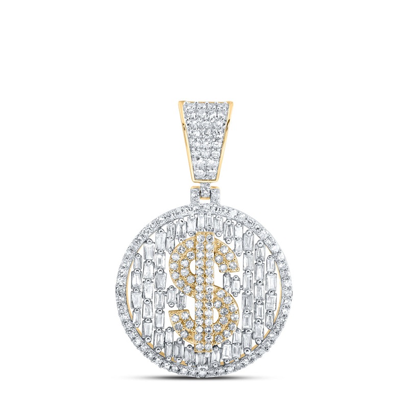 10kt Yellow Gold Mens Round Diamond Dollar Sign Circle Charm Pendant 1-1/2 Cttw