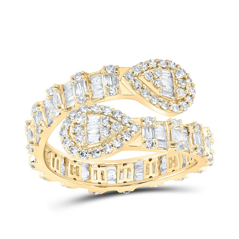 10kt Yellow Gold Womens Baguette Diamond Pear Cuff Band Ring 1 Cttw