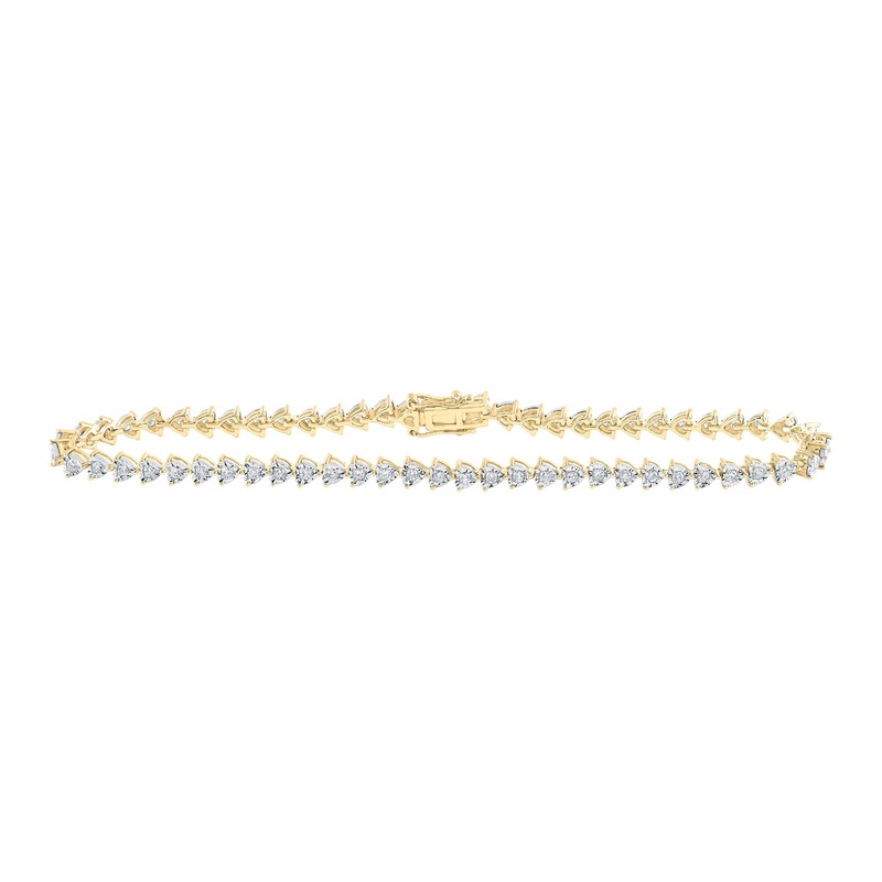 10kt Yellow Gold Womens Round Diamond 7-inch Heart Bracelet 7/8 Cttw