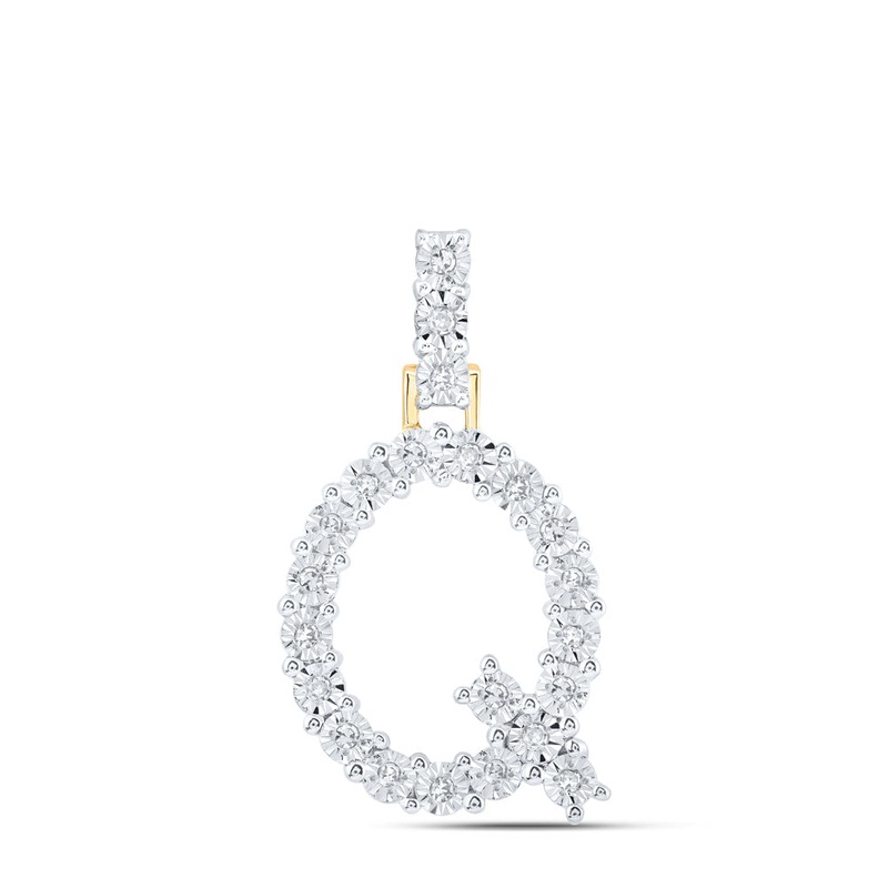 10kt Yellow Gold Womens Round Diamond Q Initial Letter Pendant 1/10 Cttw