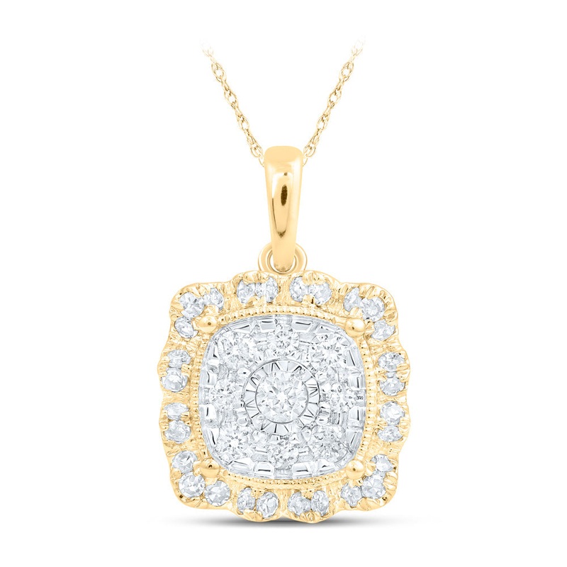 10kt Yellow Gold Womens Round Diamond Square Pendant 1/3 Cttw