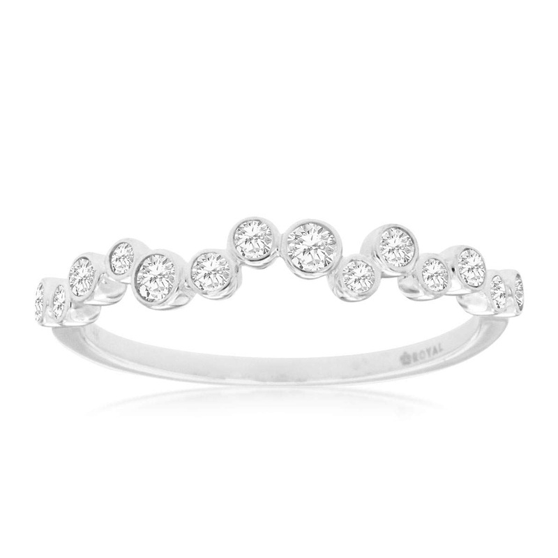14K White Gold Bezel Set Round Diamond "Bubble Style" Band, 14 Diamond= ~0.26 carats total weight