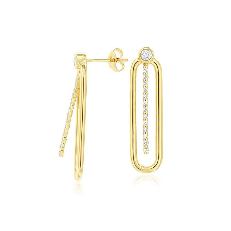 14K Yellow Gold Bezel Set Round Diamond with Long Paperclip, Diamond Drop Earring, 28 Diamond= ~0.43 carat total of diamonds