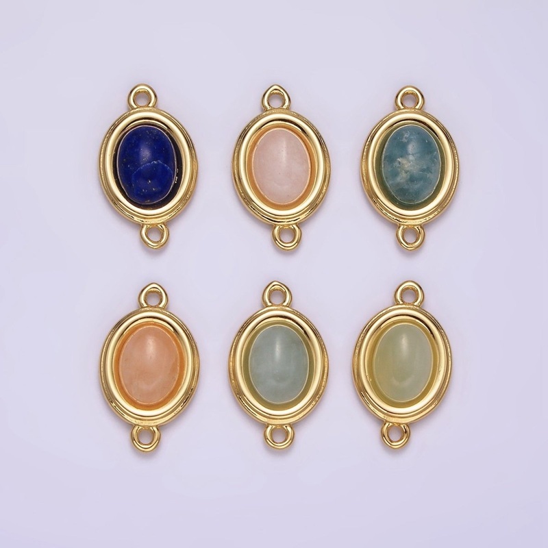 14K Gold Filled Blue Agate, Peridot, Blue Kyanite, Lapis Lazuli, Sunstone, Pink Opal Bezel Oval Connector | G100 – G105 Blue Agate
