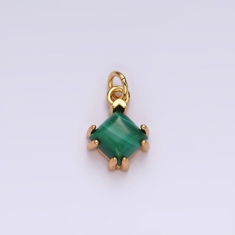 14K Gold Filled Green Malachite Framed Rhombus Mini Charm | AC789