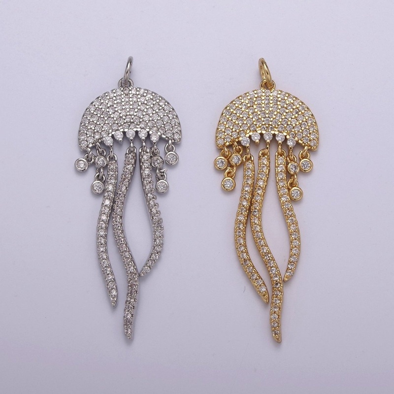 14K Gold Filled Jellyfish Charm Micro Pave Dangle Charm Ocean Lover Pendant Under The Sea Inspired Nautical, Beach Charms N-220 N-221 Gold
