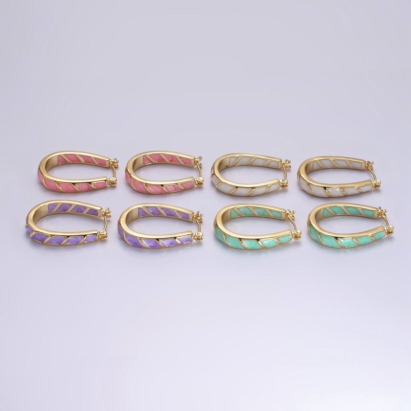 Be the first to review “14K Gold Filled Purple, Teal, Pink, White Enamel Front-Facing U-Shaped Latch Hoop Earrings | AE951 – AE954 Purple” Cancel reply