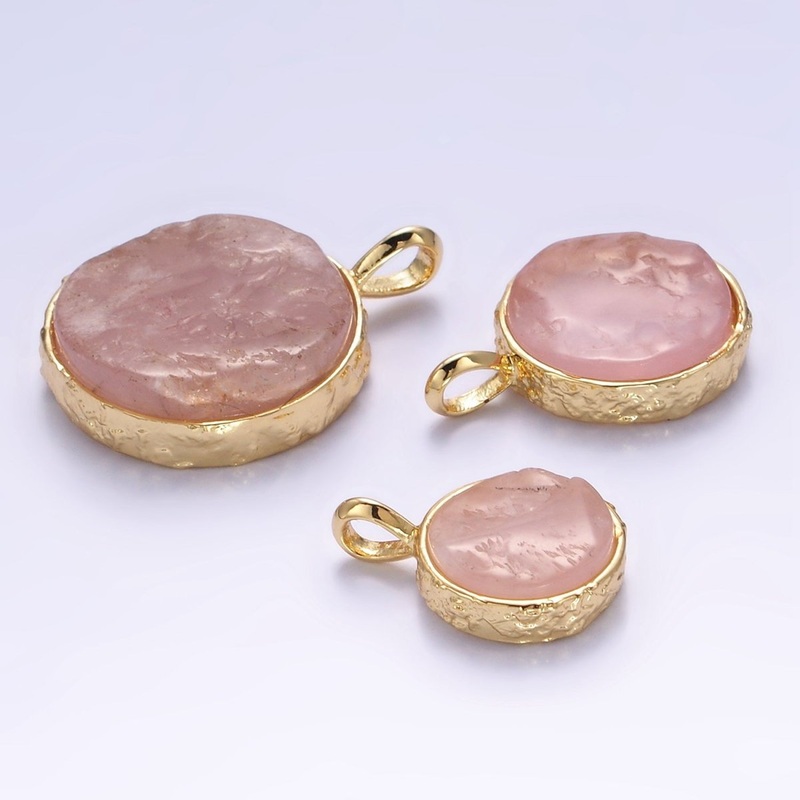 Material: Brass, Gold Filled, Rose QuartzSize: 19mm, 23mm, 29mmBail Size: 2mm, 2.5mm, 3mmQuantity: 1 PieceColor: GoldTheme: Gemstone & BirthstonesLead Free, Nickel Free