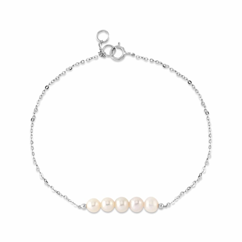 This elegant pearl bracelet features five hand-selected 4.0-4.5mm AAAA quality freshwater pearls, each chosen for their stunning luster. You’ll appreciate the beautiful cable chain that runs along both sides of the pearls, offering a refined touch. The bracelet includes a spring clasp along with an extender, allowing you to adjust the length from a standard 6 inches up to 7.5 inches. Packaged in a lovely jewelry gift box, it’s perfect for adding a touch of luxury to any occasion.