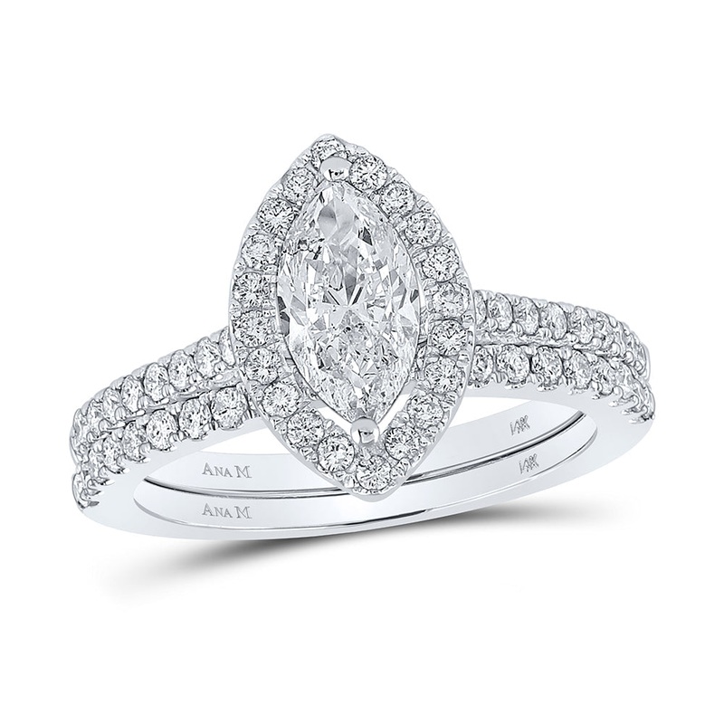 14kt White Gold Marquise Diamond Halo Bridal Wedding Ring Band Set 1-1/2 Cttw