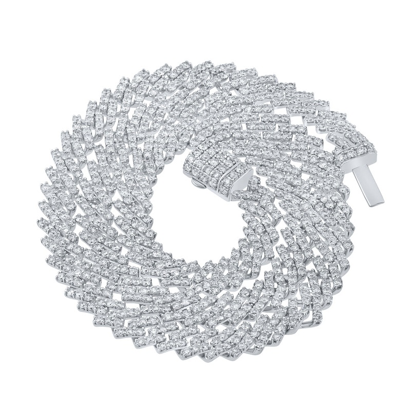 14kt White Gold Mens Round Diamond 22-inch Cuban Link Chain Necklace 17-3/4 Cttw
