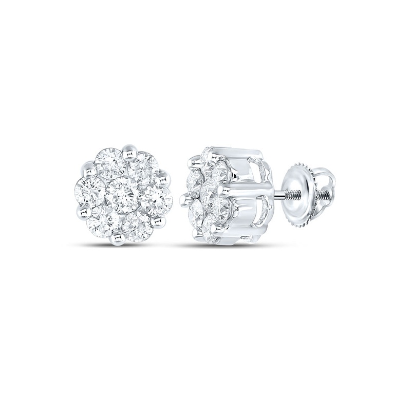 14kt White Gold Womens Round Diamond Flower Cluster Earrings 1-1/2 Cttw