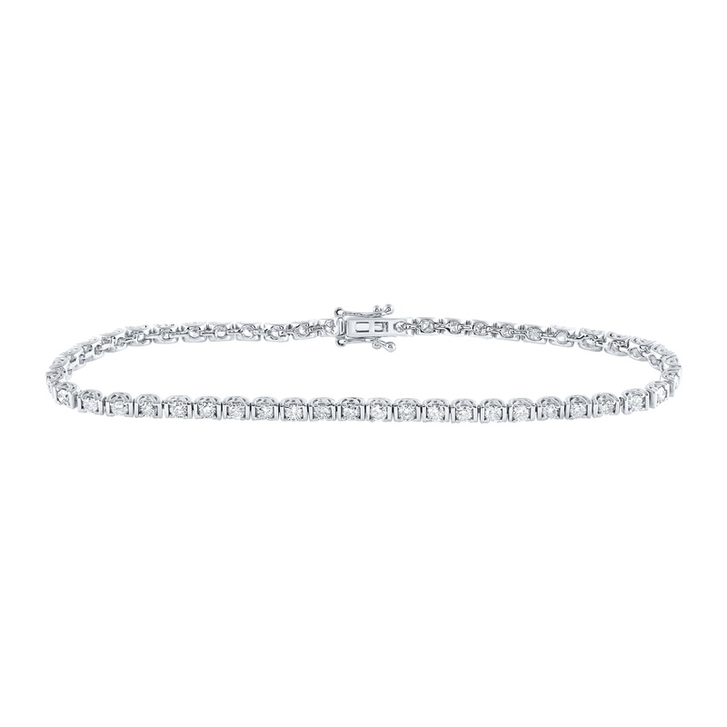 14kt White Gold Womens Round Diamond Single Row Tennis Bracelet 2 Cttw