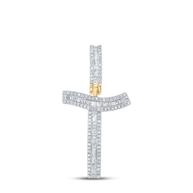 14kt Yellow Gold Mens Baguette Diamond T Initial Letter Charm Pendant 5/8 Cttw