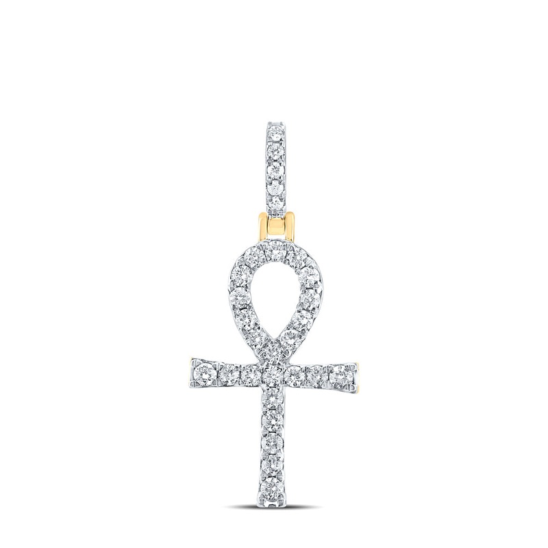 14kt Yellow Gold Mens Round Diamond Ankh Charm Pendant 1/2 Cttw