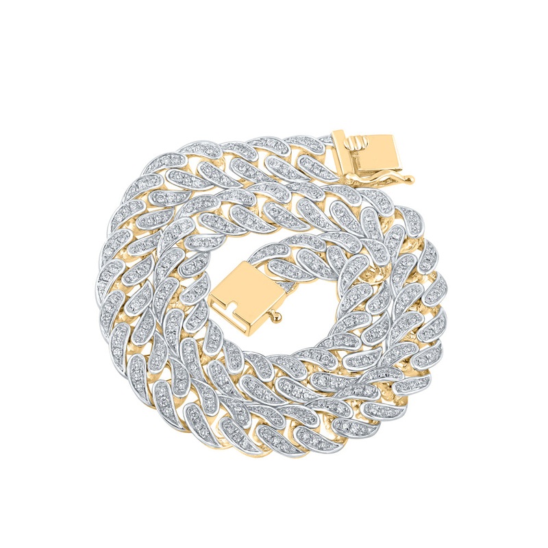 14kt Yellow Gold Mens Round Diamond Cuban 10-inch Link Bracelet 2-1/3 Cttw
