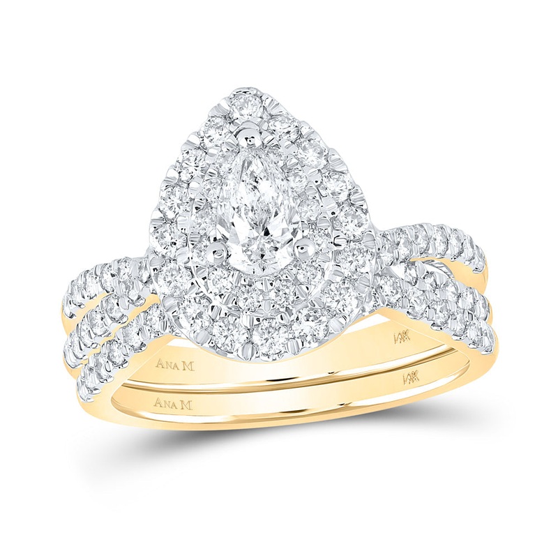 14kt Yellow Gold Pear Diamond Halo Bridal Wedding Ring Band Set 1-1/2 Cttw