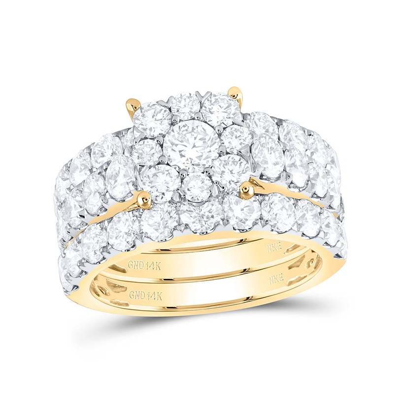 14kt Yellow Gold Round Diamond Halo Bridal Wedding Ring Band Set 4 Cttw